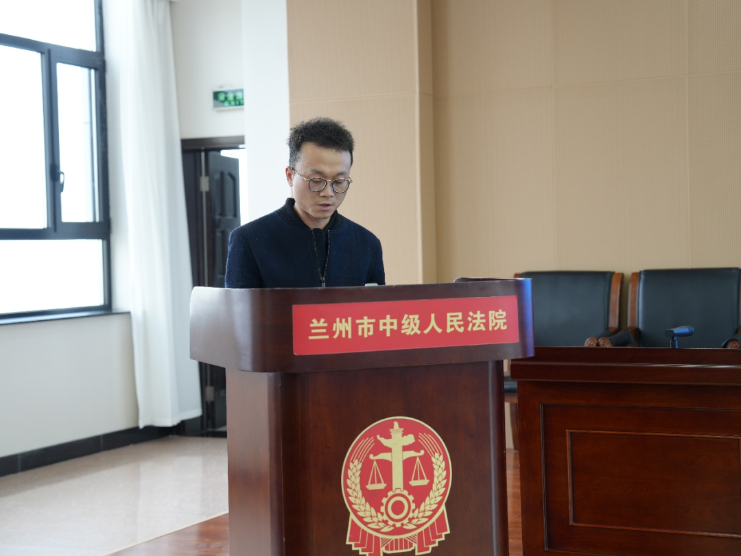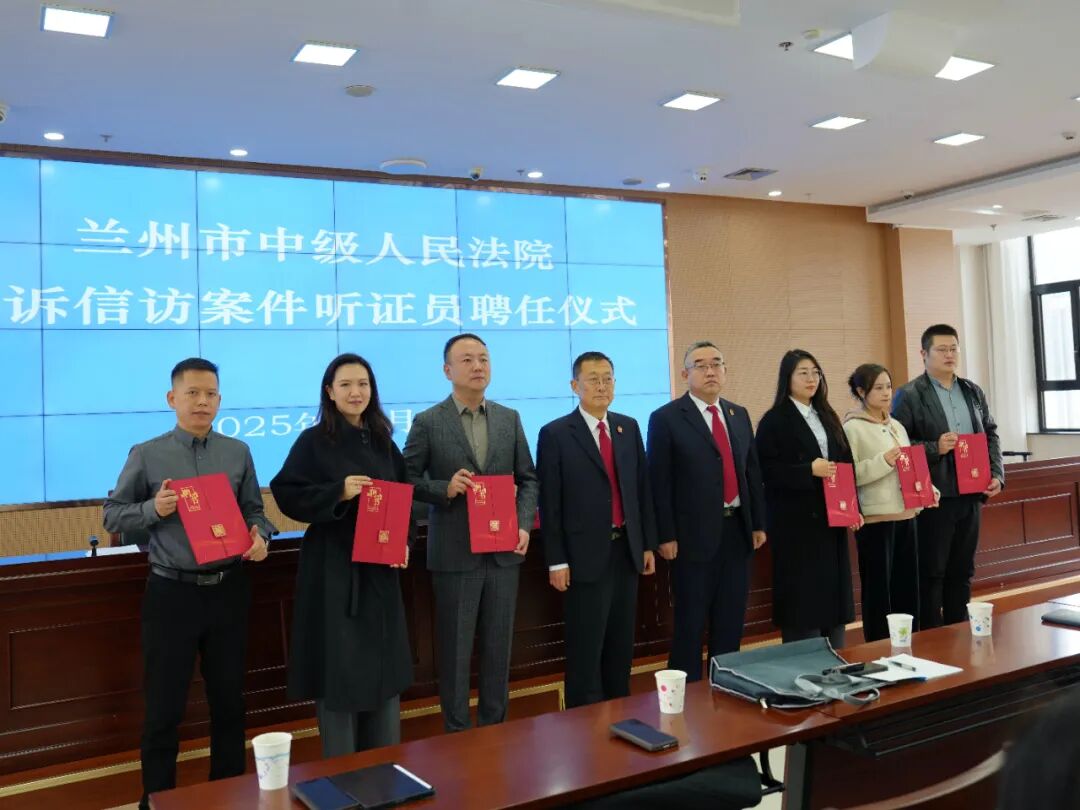 聘任仪式上,陈爱明介绍了建立申诉信访案件听证员库相关背景和基本情况,刘佃兵宣读了兰州中院聘任决定,听证员代表王辉、朱磊作了履职发言。