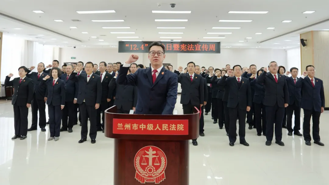 为进一步激励和教育干警忠于宪法、遵守宪法、维护宪法,全面履职,奋勇争先,以无愧于时代和人民的担当,践行司法承诺。12月4日上午,兰州中院举行2025年宪法宣誓仪式。党组书记、院长王烨领誓,全体党组成员、部门正副职及员额法官参加仪式。