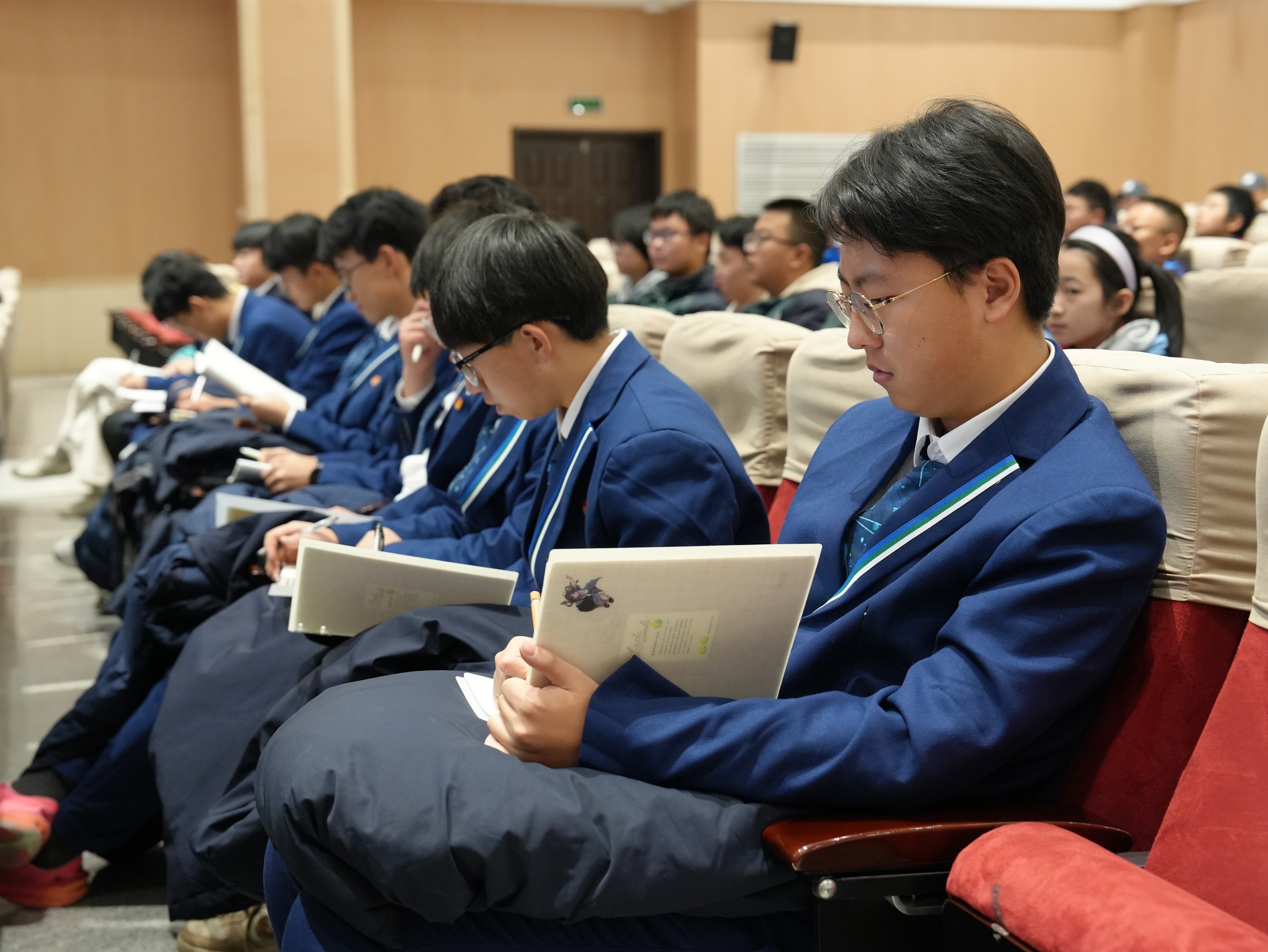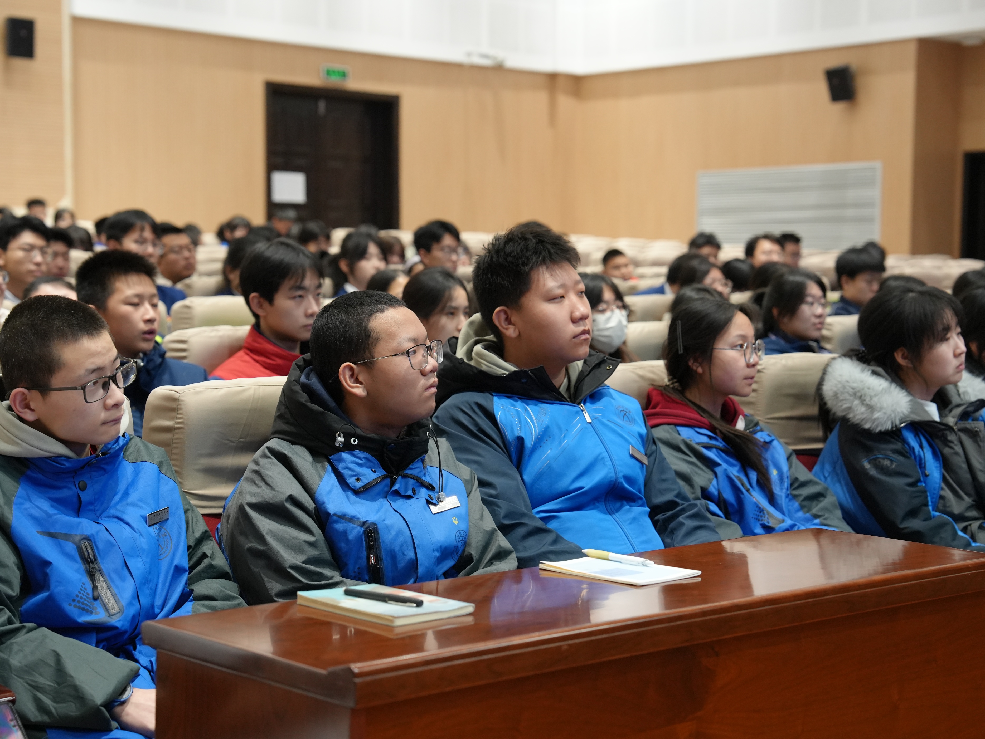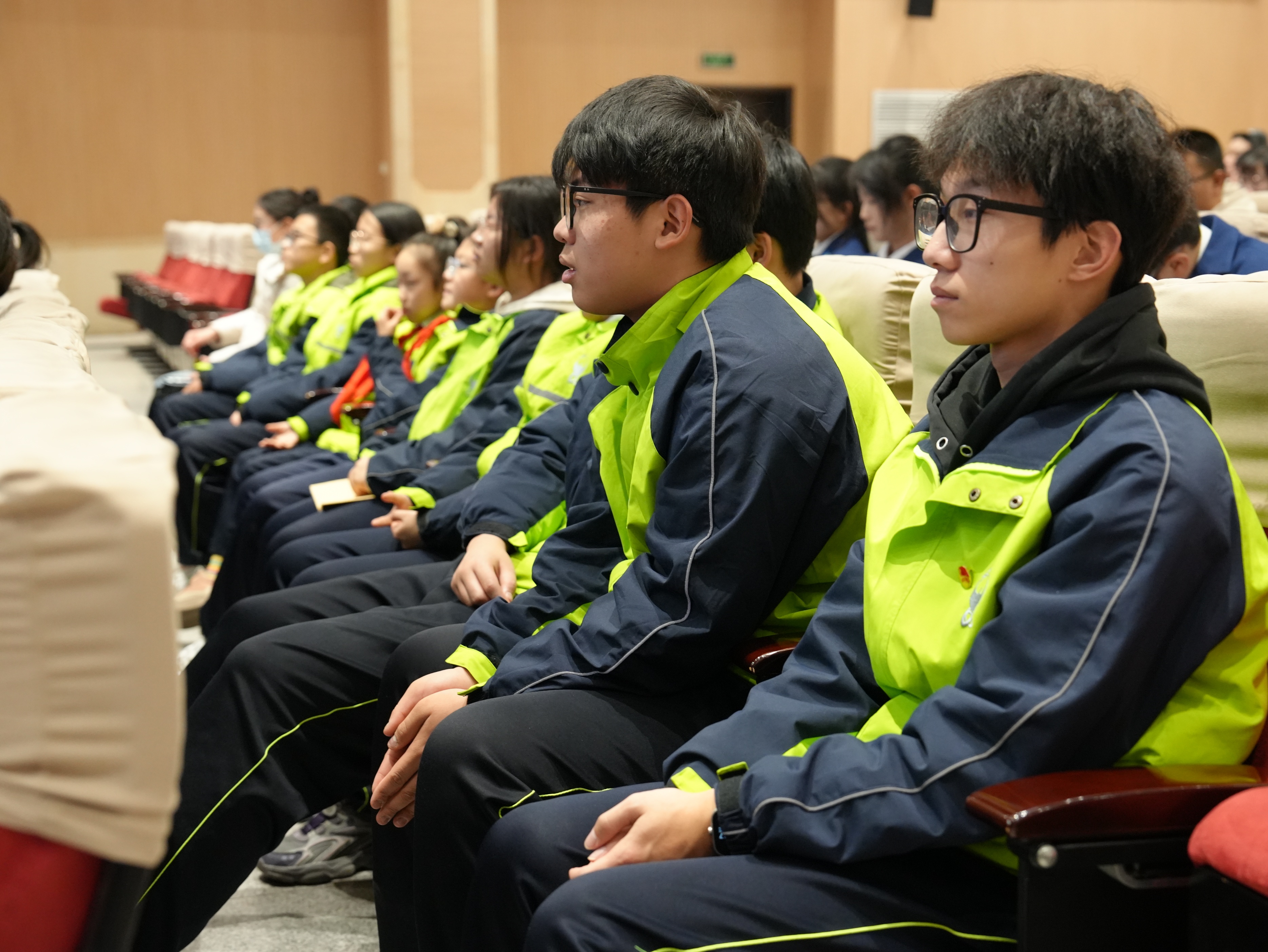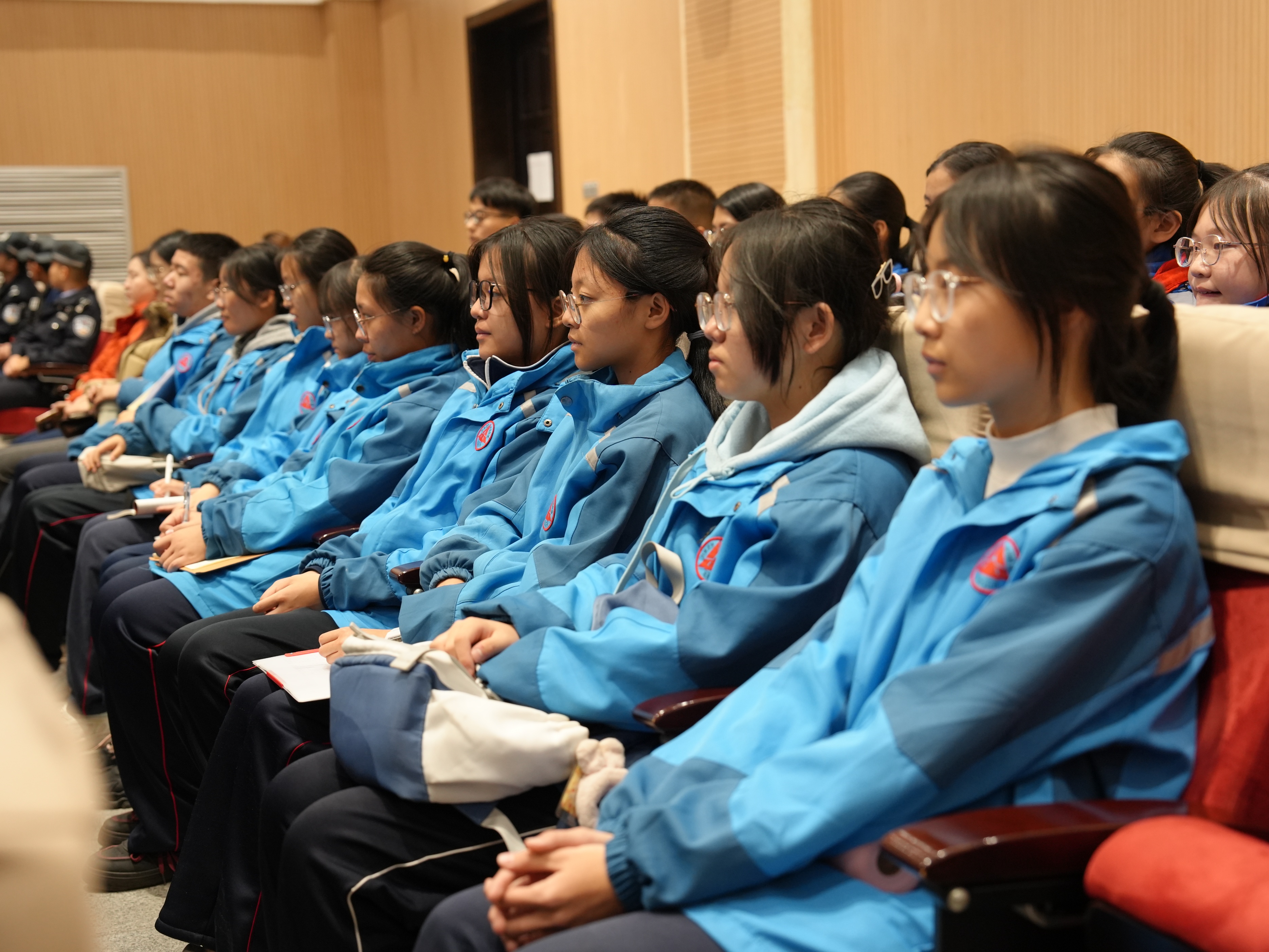 活动的第一站,同学们集中观看了青少年法治宣传片。在观看《回归》时,原本有些随意晃动的脑袋渐渐端正起来;当《对欺凌者说“不”》中校园冲突的真实场景再现时,前排的学生不自觉地挺直了腰背;而《一念之差》结尾处人生轨迹的对比画面出现时,现场此起彼伏的呼吸声愈发清晰。真实案例所带来的冲击力,在一片沉默中悄然渗透进每个人的心里。