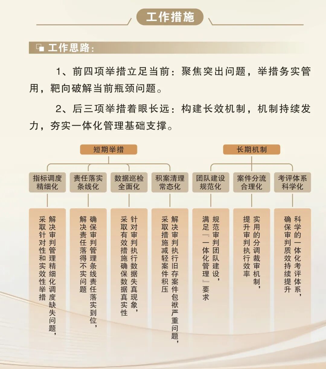 层级联动协同化。建立“指标会商+案例指导”双轨机制,协同各基层法院、部门及团队,共同设定阶段和年度目标,提炼并分享质效管理的正反典型案例,促进审判执行工作规范化。