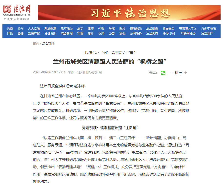 在甘肃省兰州市核心城区,一个年均办案2000件以上,法官年均结案600余件的人民法庭,正以“枫桥经验”为笔,书写着基层治理的“智慧答卷”。