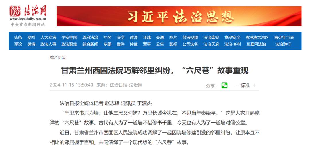 甘肃省兰州市西固区人民法院成功调解了一起因院墙修建引发的邻里纠纷,让原本互不相让的邻居握手言和,共同演绎了一个现代版的“六尺巷”故事。