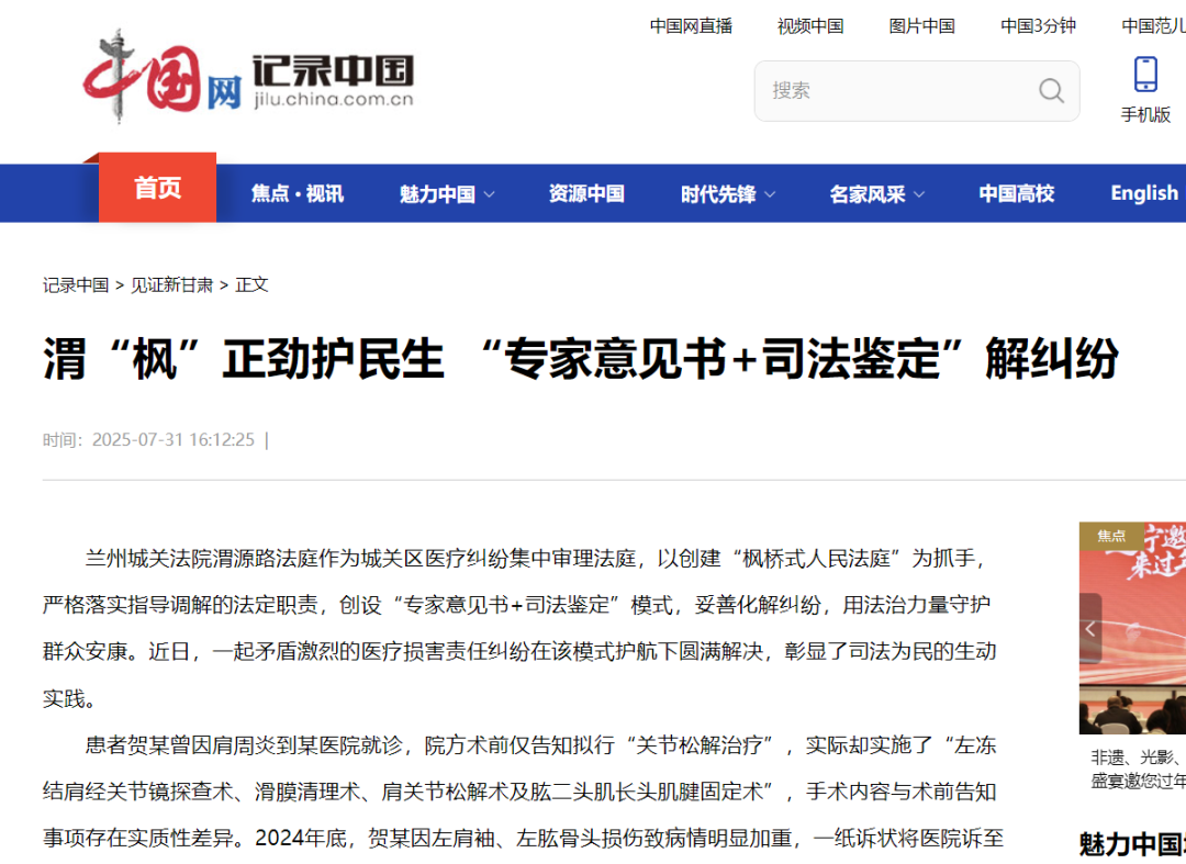 兰州城关法院渭源路法庭作为城关区医疗纠纷集中审理法庭,以创建“枫桥式人民法庭”为抓手,严格落实指导调解的法定职责,创设“专家意见书+司法鉴定”模式,妥善化解纠纷,用法治力量守护群众安康。