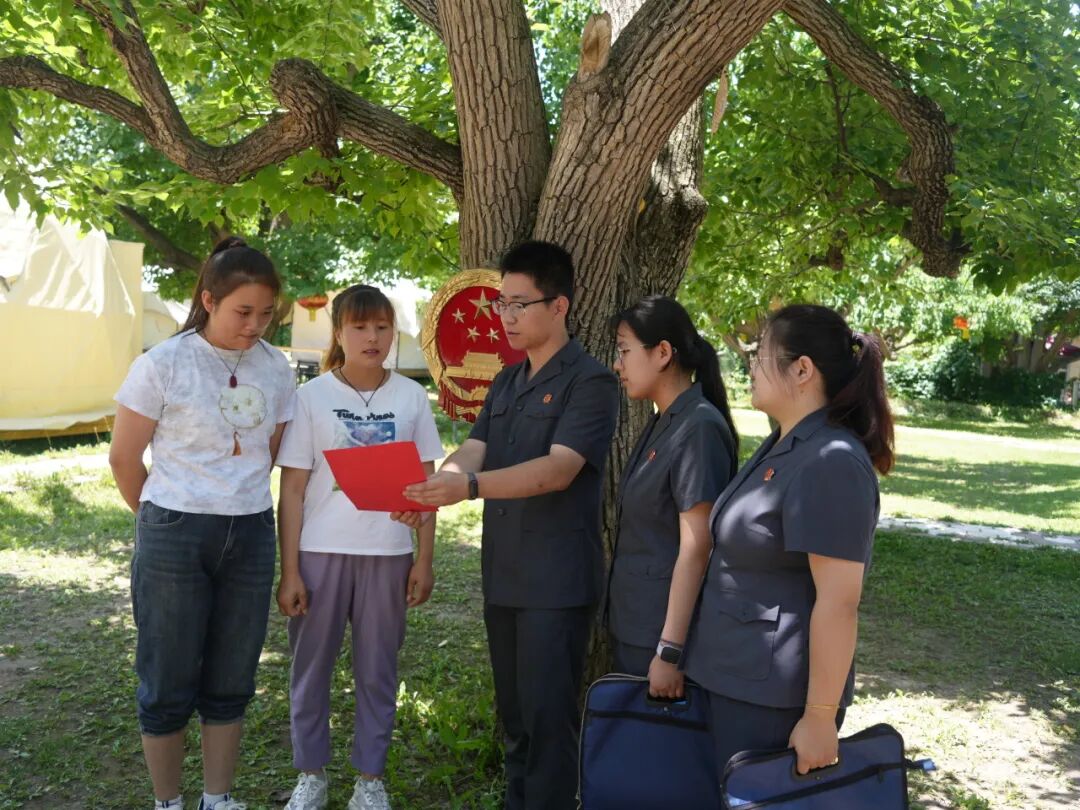 皋兰法院向群众现场发放宣传材料、解答法律问题。