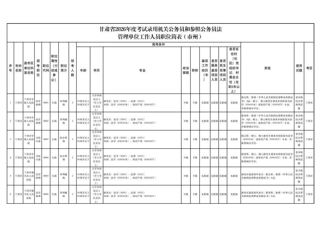 甘肃省2026年度考试录用