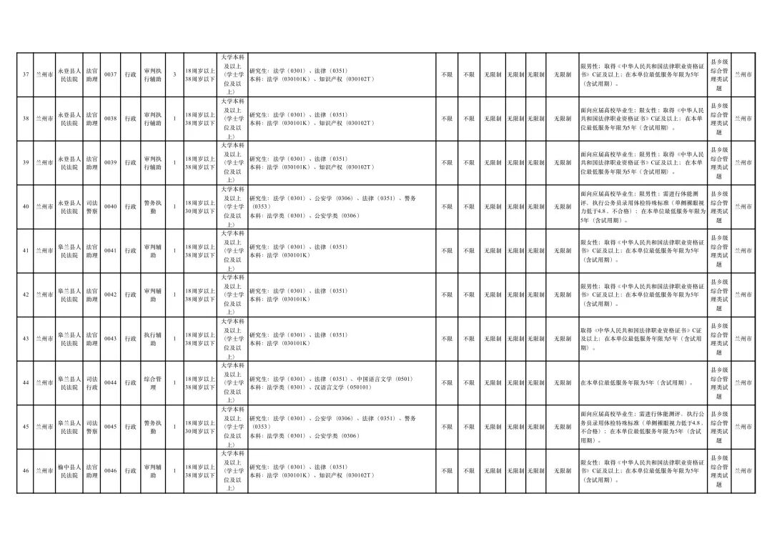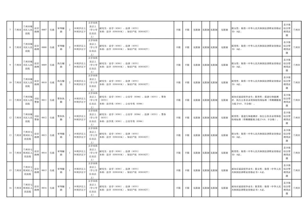 兰州法院共招录75人