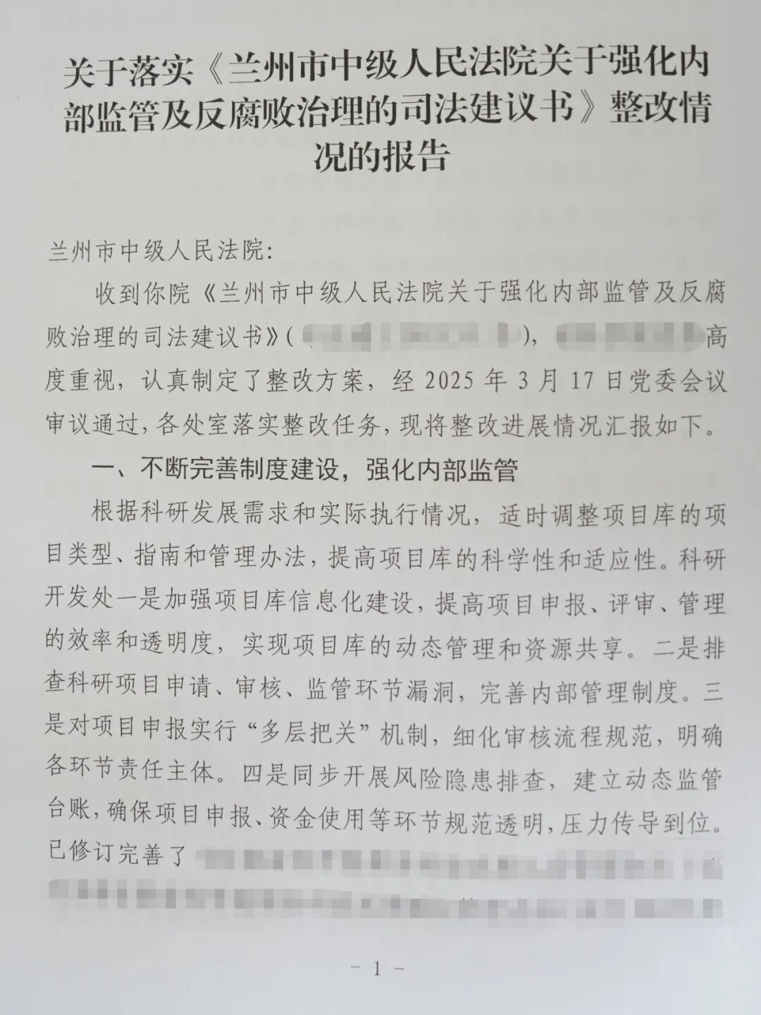 司法建议是践行习近平法治思想,推进国家治理体系和治理能力现代化的重要举措。兰州法院将继续延伸审判职能,坚持在依法审判中发现问题、寻找成因,提出更具针对性和可行性的高质量建议,为推进法治兰州建设提供更加有力的司法保障和服务。