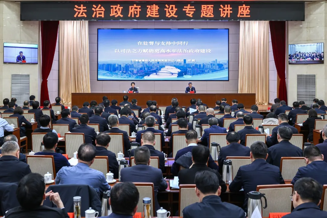本次讲座以《在监督与支持中同行:以司法之力赋能更高水平法治政府建设》为题,系统阐释了依法行政的时代要义及理论根基、行政执法中应当遵循的基本原则以及依法行政的甘肃实践及优化路径。