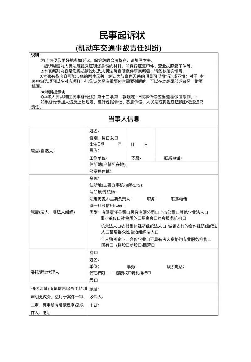 考虑到原告马某对法律程序不熟悉,且伤情可能涉及伤残等级评定,立案窗口工作人员主动引导其使用“机动车交通事故责任纠纷要素式起诉状”示范文本。工作人员指导马某对照表格,逐项勾选医疗费、误工费、护理费、营养费等赔偿项目,并填写具体金额及计算依据。仅用半小时,马某便清晰、规范地完成了立案手续,确保了诉讼请求“不遗漏、无偏差”。