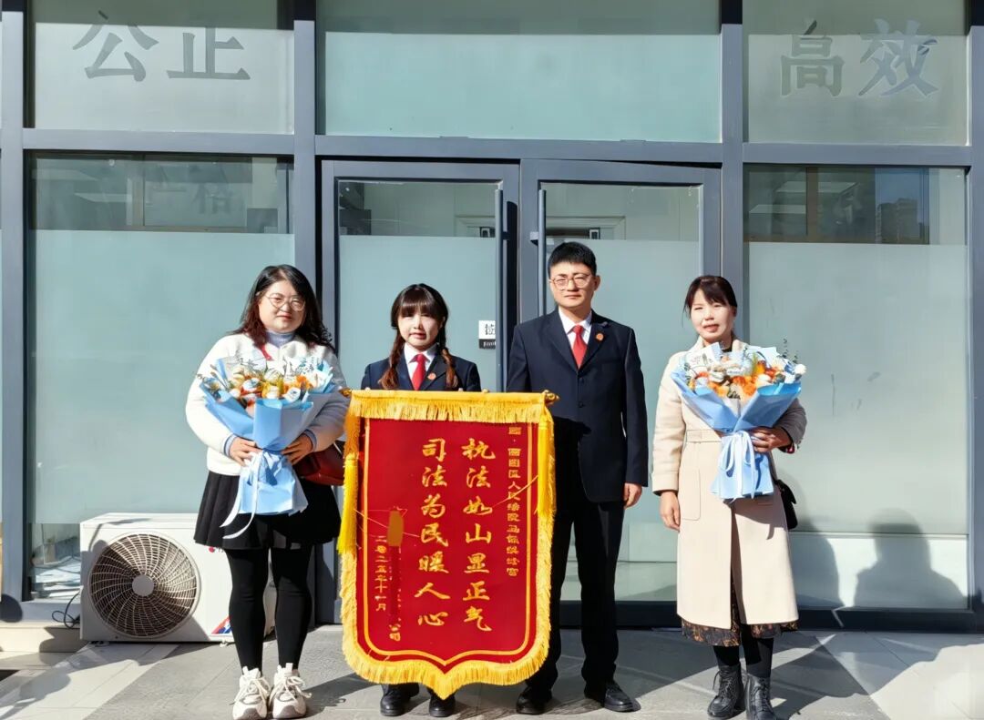 很快,执行法官找来了乙公司的法定代表人,一方面释放法院的善意,允许乙公司利用运货车辆继续生产经营;另一方面敦促乙公司在收到钱款后主动履行义务,否则将承担法律责任。西固法院善意文明执行令乙公司法定代表人颇为感动,他承诺于水果卖出后第一时间履行付款义务。一个月后,乙公司的对公账户就有了一笔进账,其法定代表人主动将情况告知执行法官,执行法官在足额扣划后向申请执行人发还了案款,案件至此执行完毕。为了表达感谢,申请人甲公司于近日专程来到西固法院,并将一面写有“执法如山显正气 司法为民暖人心”的锦旗赠送给执行法官。