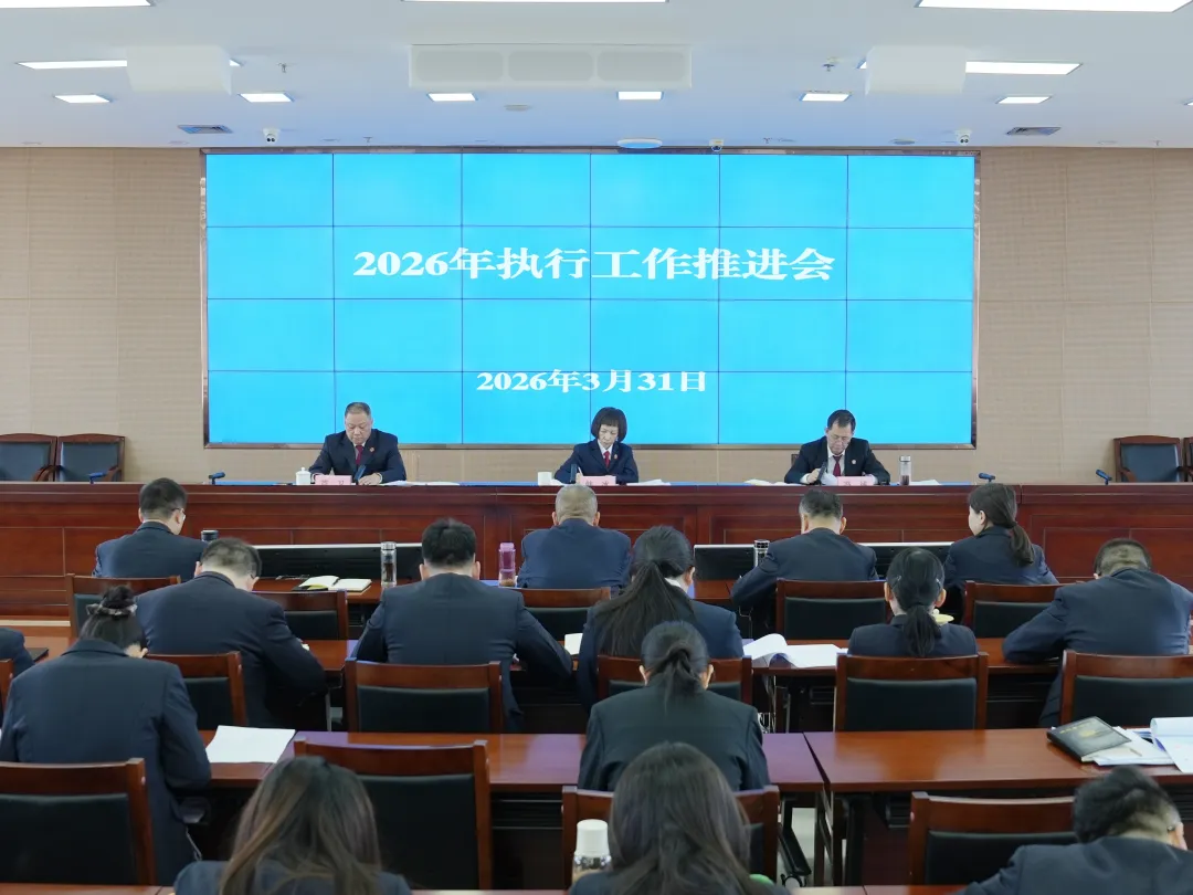 会议分两个阶段进行。上午的工作推进会通报了2025年及2026年一季度全市法院执行质效运行态势、裁决类案件办理情况,以及各类专项工作落实成效,各基层法院执行局长进行述职。