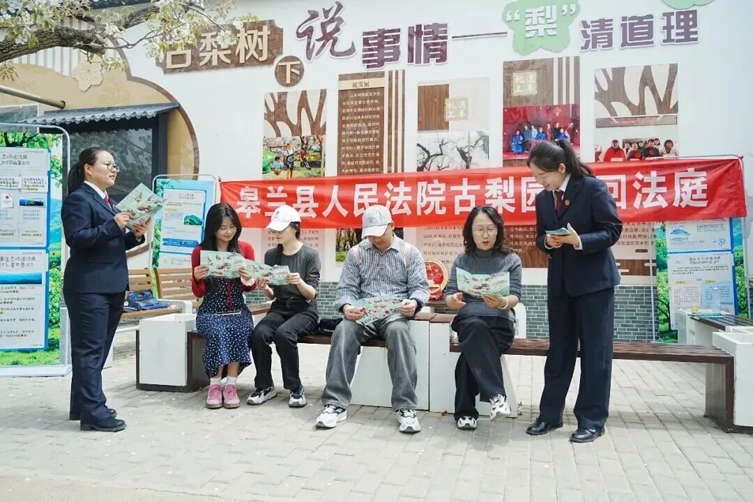 针对群众关心的古梨树养护、生态纠纷化解、法律维权途径等问题,干警们耐心细致逐一解答,积极引导群众树立“绿水青山就是金山银山”的生态理念,自觉遵守生态环境保护法律法规,主动参与到古梨园生态保护工作中,争做生态环境的守护者、法治理念的践行者。同时,干警们还向群众普及了法院生态司法保护职能、古梨园司法保护工作站服务内容,畅通群众生态纠纷诉求渠道,让法治宣传更接地气、更贴民心。